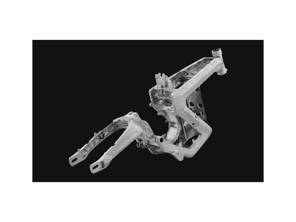 Celohliníkový rám lisovaný tlakem 6000 tun – pevný, tuhý a zároveň lehký.
