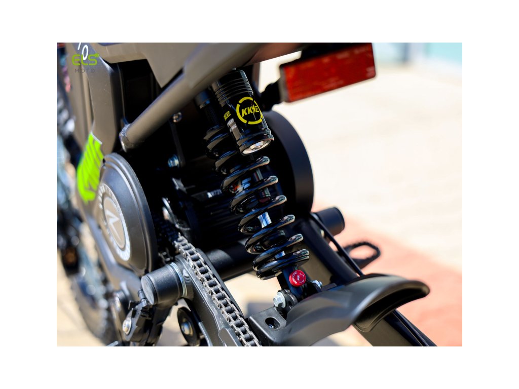 Motorka je osazena kvalitní lithium-iontovou baterií LG (72 V / 20 Ah / 1,44 kWh) a precizně vyladěným odpružením tvořeným hliníkovými prvky a ocelovými pružinami. Výsledkem je stabilní, pohodlná a kontrolovaná jízda i v náročném terénu.
