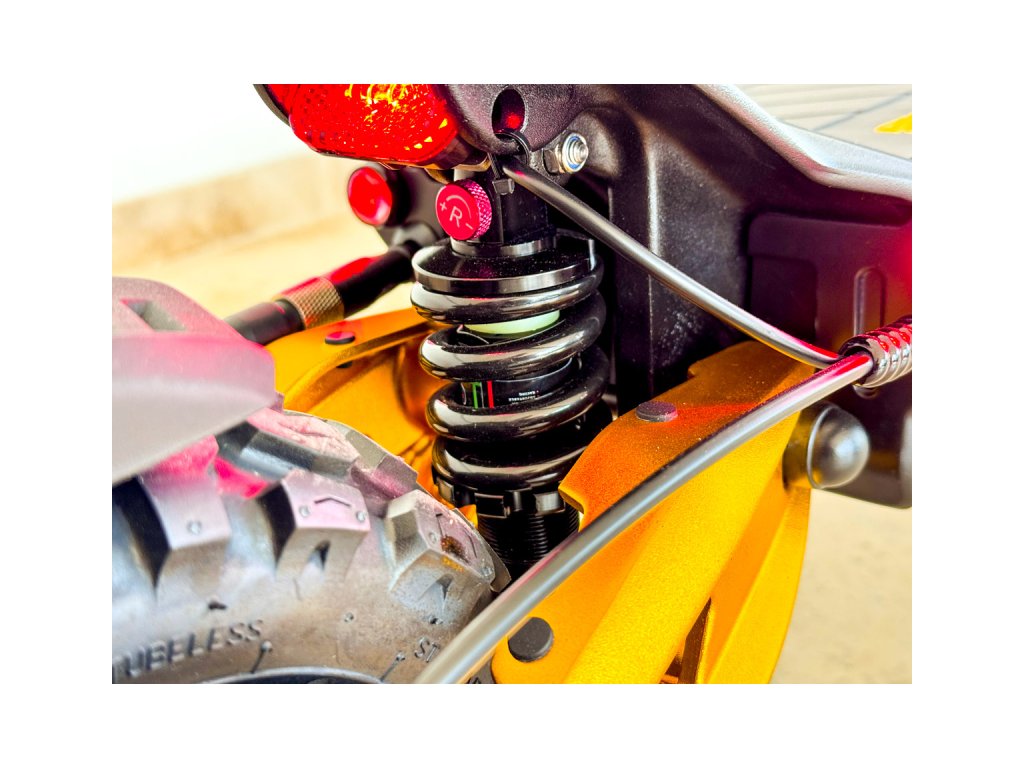 Koloběžka je velmi kvalitně a prémiově zpracovaná, je určena jak pro delší výlety tak pro jízdu v lehčím terénu. Díky "C" hydraulickému nastavitelnému pružení je koloběžka velmi dobře odpružena a mimořádné komfortní! Zároveň koloběžka nabídne dostatek výkonu na 60-ti voltovém systému, což je výhodou pro jízdu do kopců, ale také při rychlé jízdě po rovině a akceleraci. Díky hliníkovému rámu, je celková váha pouze 34 Kg, což při uvedeném poměru výkonu, dojezdu a velikosti výborná hodnota.